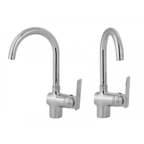 - однозахватный хромированный дугообразный смеситель;