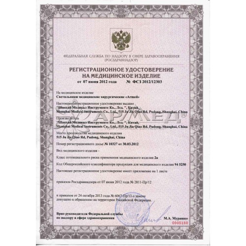 Светильник медицинский хирургический, 100203007, Медицинское оборудование и сопутствующие товары