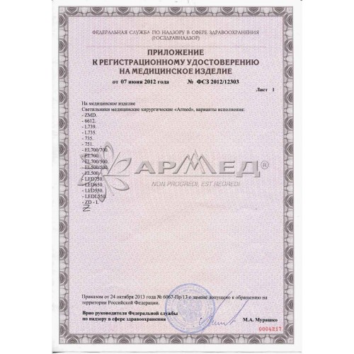 Светильник медицинский хирургический "Armed": ZD-I предназначен для общего освещения рабочего поля при медицинских обследованиях, после операций, для диагностики и осмотров в таких областях как гинекология, терапия, хирургия и т.д. в лечебно-профилактических учреждениях