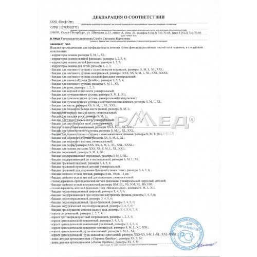 Показания к применению ортеза, режим и сроки ношения определяет лечащий врач.