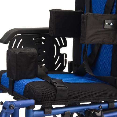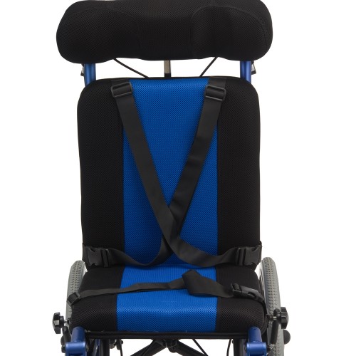 Кресло-коляска оснащена пятиточечным ремнем безопасности, который регулируется по длине и имеет надежную застежку.