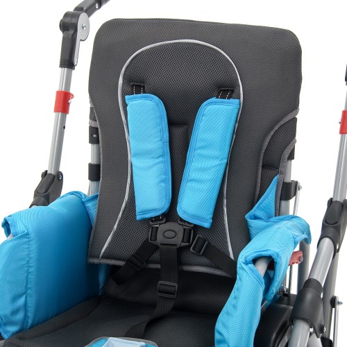 Кресло-коляска оснащена пятиточечным ремнем безопасности, который регулируется по длине и имеет надежную застежку.