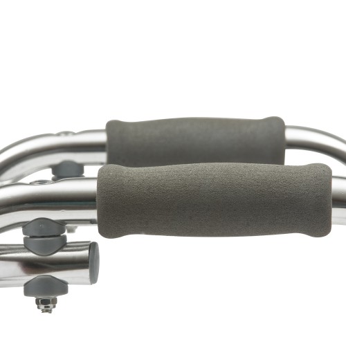 Ходунки изготовлены из металла, имеют мягкие накладки на поручни.