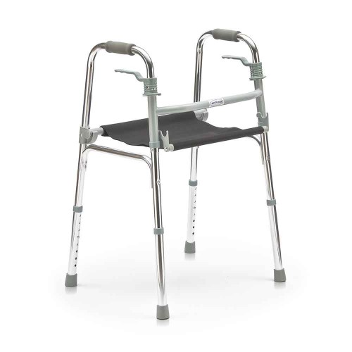 Ходунки имеют складывающееся сиденье, которое позволяет использовать их как стул.