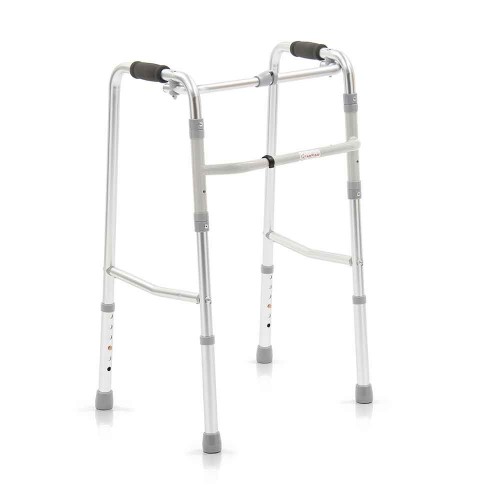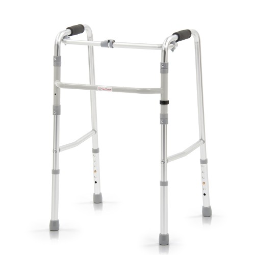 Легкие и удобные в эксплуатации. Ходунки удобно использовать как в "нешагающем", так и "шагающем" режимах. В первом случае, можно приподнимать изделие во время остановки и опираться на него при ходьбе. Во втором случае, пользователь может переставлять поочередно правую и левую стороны ходунков во время движения, что немаловажно для пользователей с ослабленными руками. Модель легко складывается и раскладывается. Ходунки занимают мало места при хранении и транспортировке.