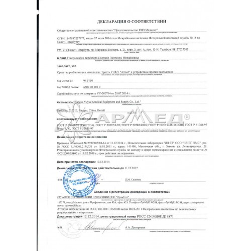 Средство реабилитации инвалидов: трость YU821 "Armed " с устройством против скольжения.